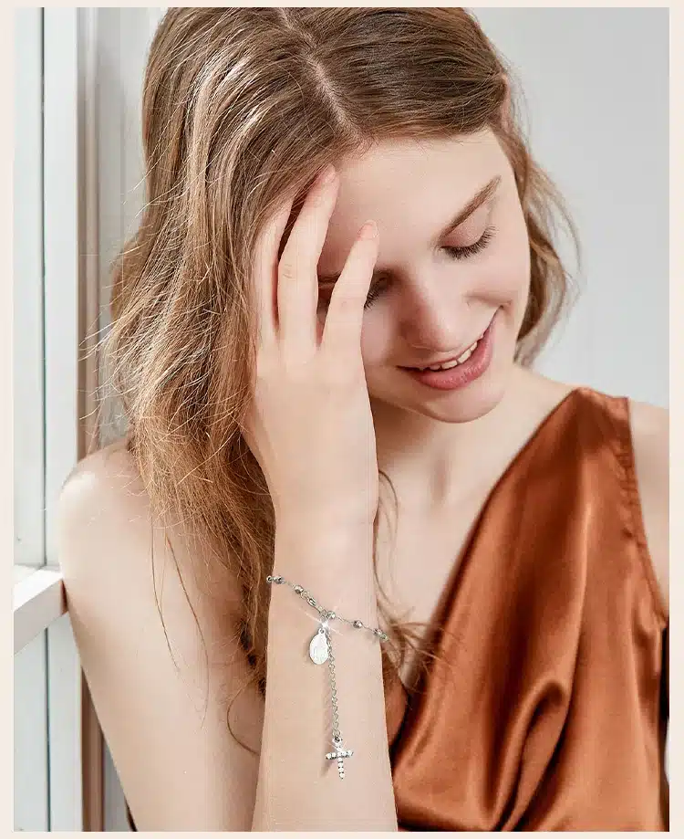 Le bracelet chapelet croisé est un cadeau parfait pour les anniversaires, fiançailles ou toute autre occasion spéciale, symbolisant la foi et la dévotion.