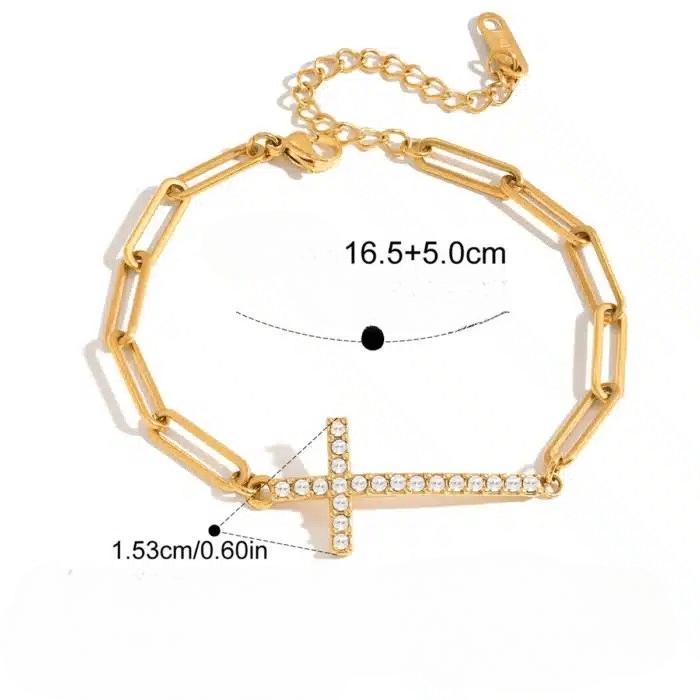 Le bracelet classique croix se distingue par sa croix chrétienne de 15mm, parfaitement proportionnée pour orner votre poignet avec élégance.