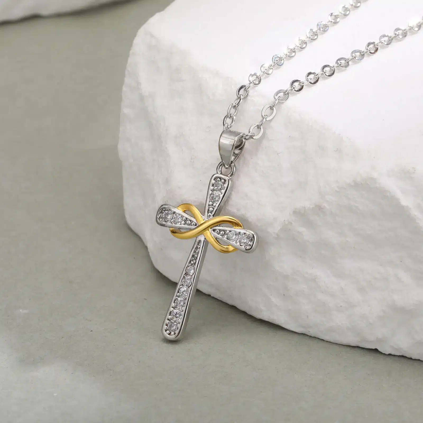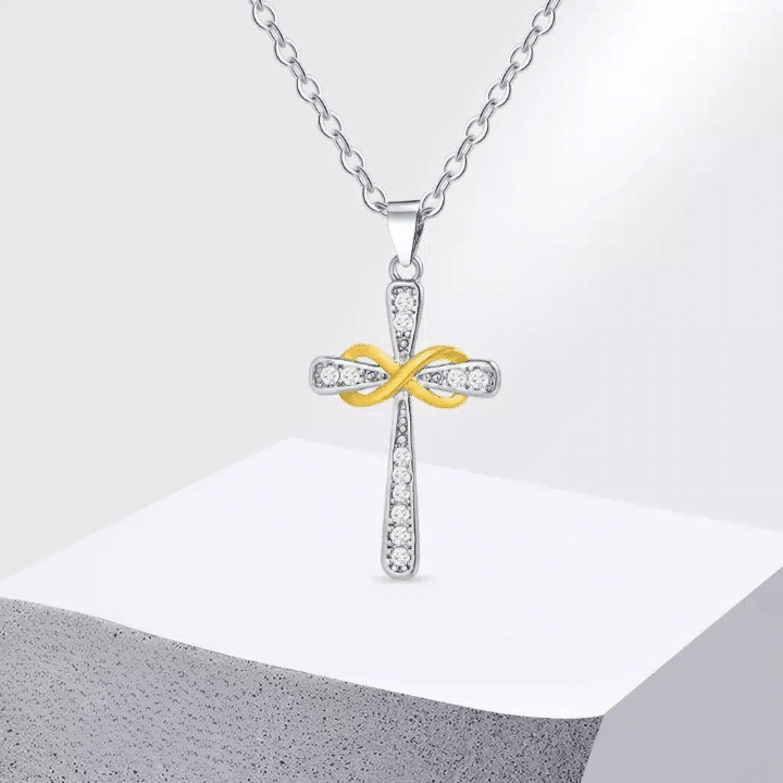 Le collier amour infini marie la croix du Christ avec le symbole de l’infini, une double signification puissante qui rappelle l’amour sans limite de Jésus pour l’humanité.