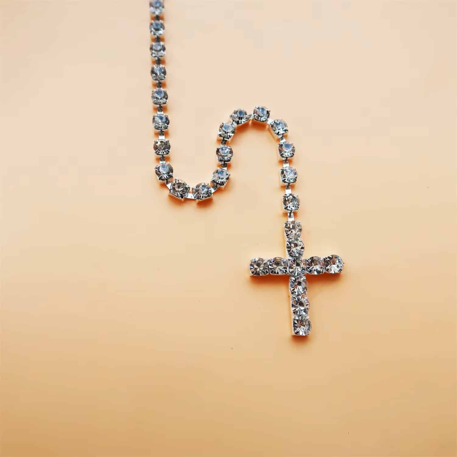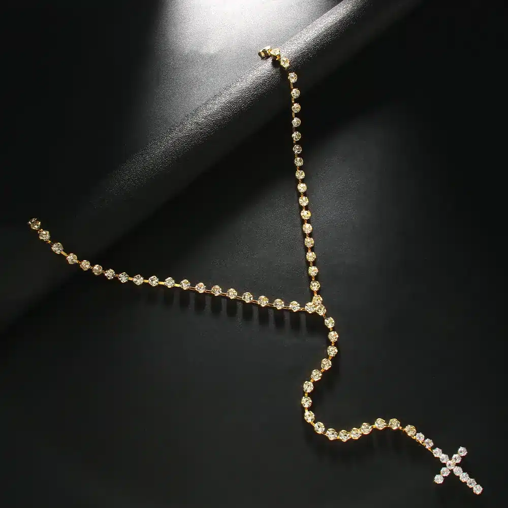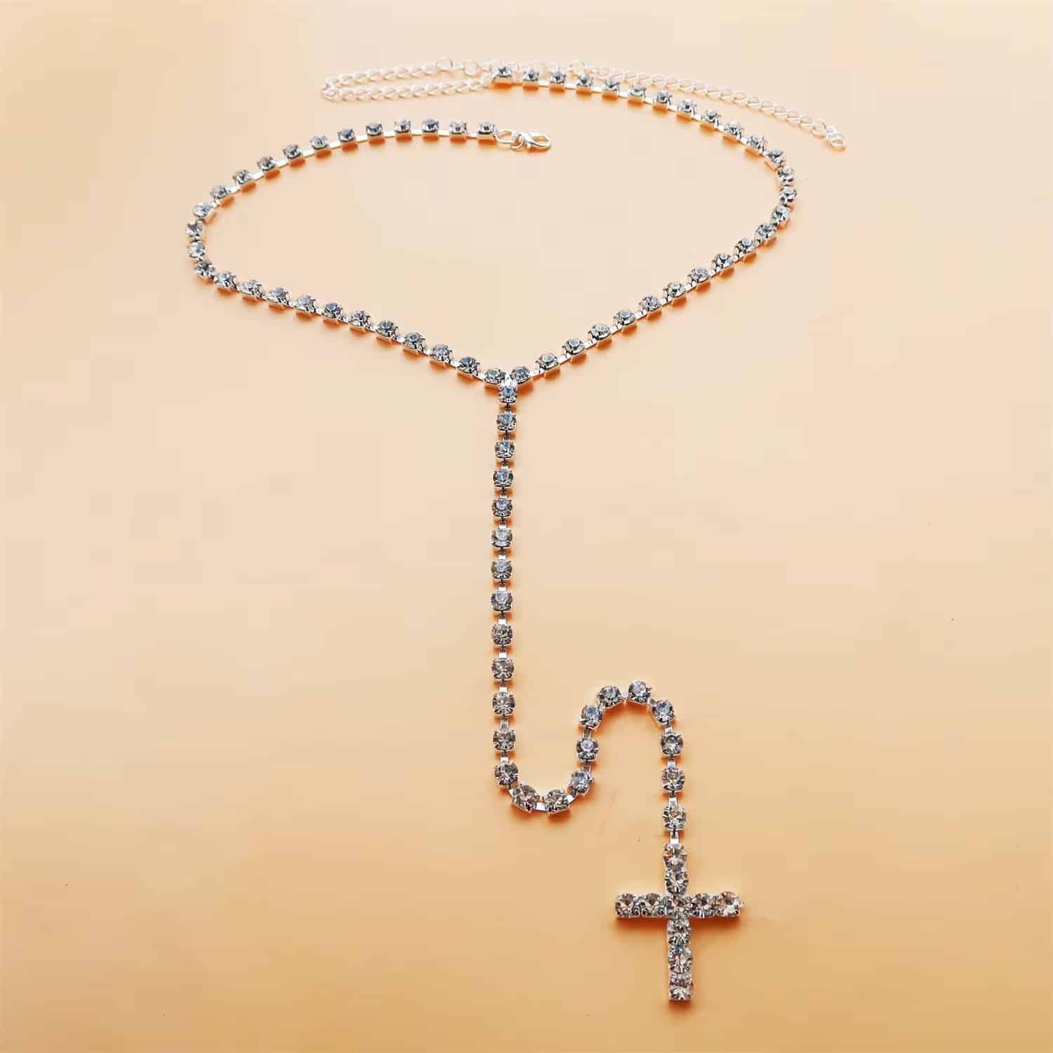 Le collier croix strass se démarque avec son design en Y composé d’une partie ras de cou (40+5cm) et d’un pendentif de 12cm orné d’une croix chrétienne scintillante.